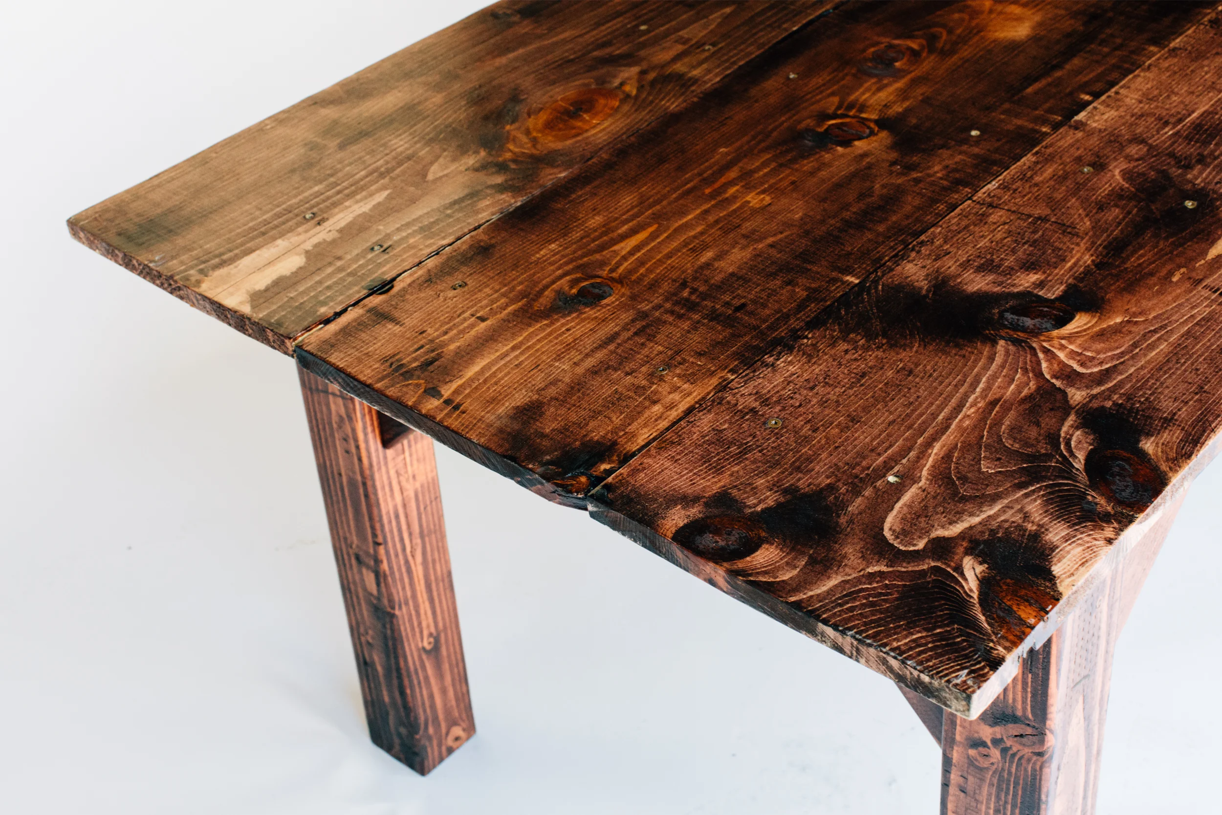 Our 8-foot farmhouse tables are thoughtfully designed to balance style and function, making them ideal for weddings and special events.